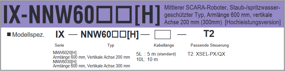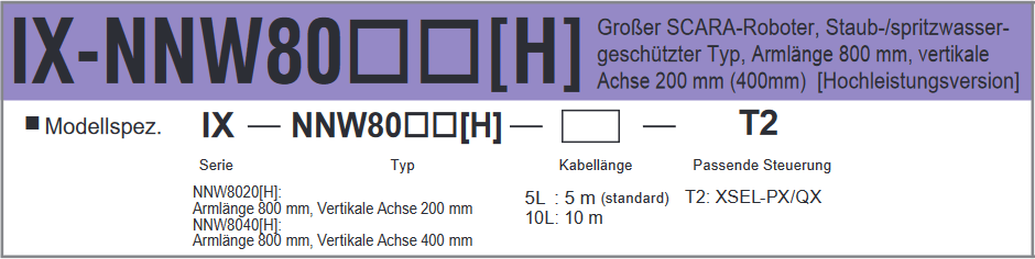 IP65-Typen mit 250 bis 800 mm Armlänge
